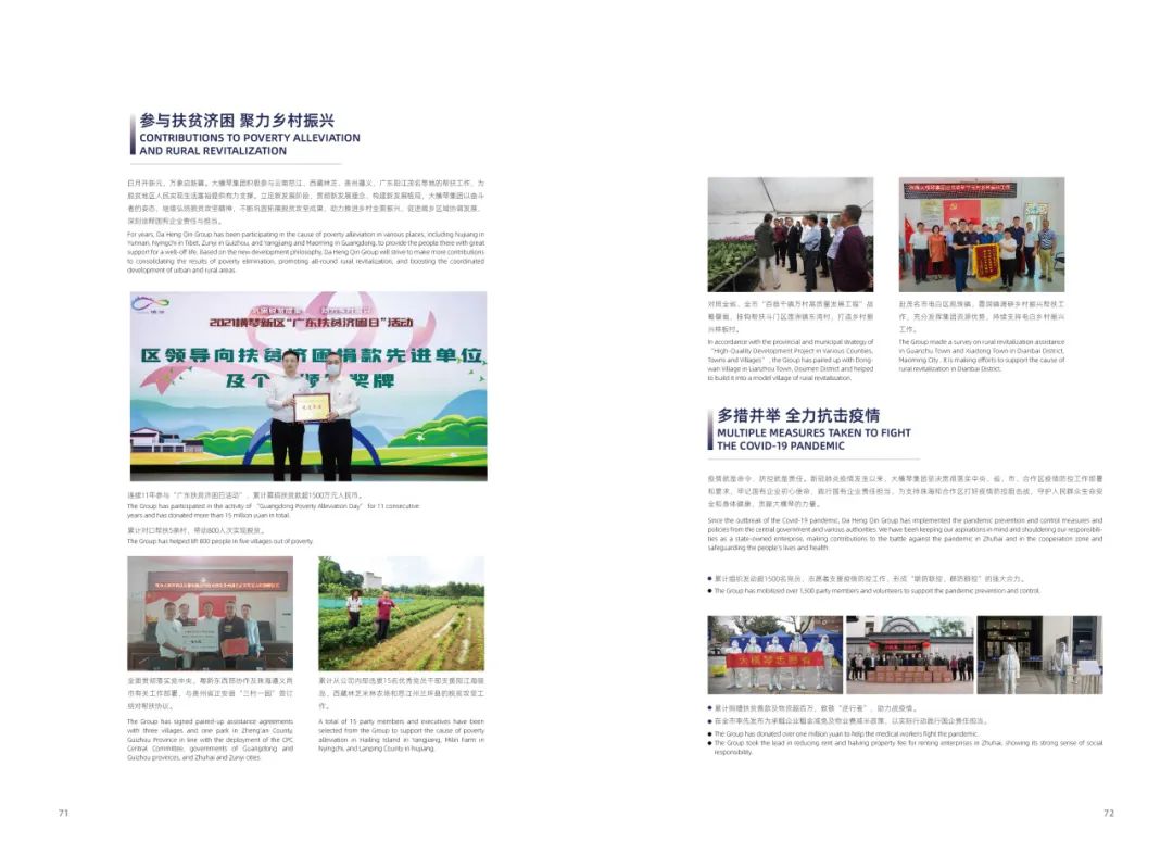 積極參與云南怒江、西藏林芝、貴州遵義、廣東陽江茂名等地的幫扶工作,助力推進鄉村全面振興;在疫情防控的特殊時期,舉全集團之力支持珠海和合作區打好疫情防控阻擊戰;主動投身社會民生事業,開展公益活動,為珠海建設民生幸福樣板城市貢獻力量……