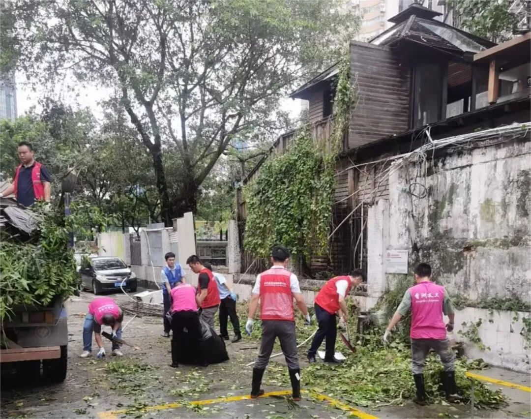 各下屬企業嚴格按照集團統一部署,迅速對所轄項目、區域開展排查隱患、應急搶險等工作;由黨員作為主干力量的防御臺風“樺加沙”先鋒突擊隊馳援掛點聯系的社區開展救災復產和防蚊滅蚊工作,搶時間提效率,積極復工復產。
