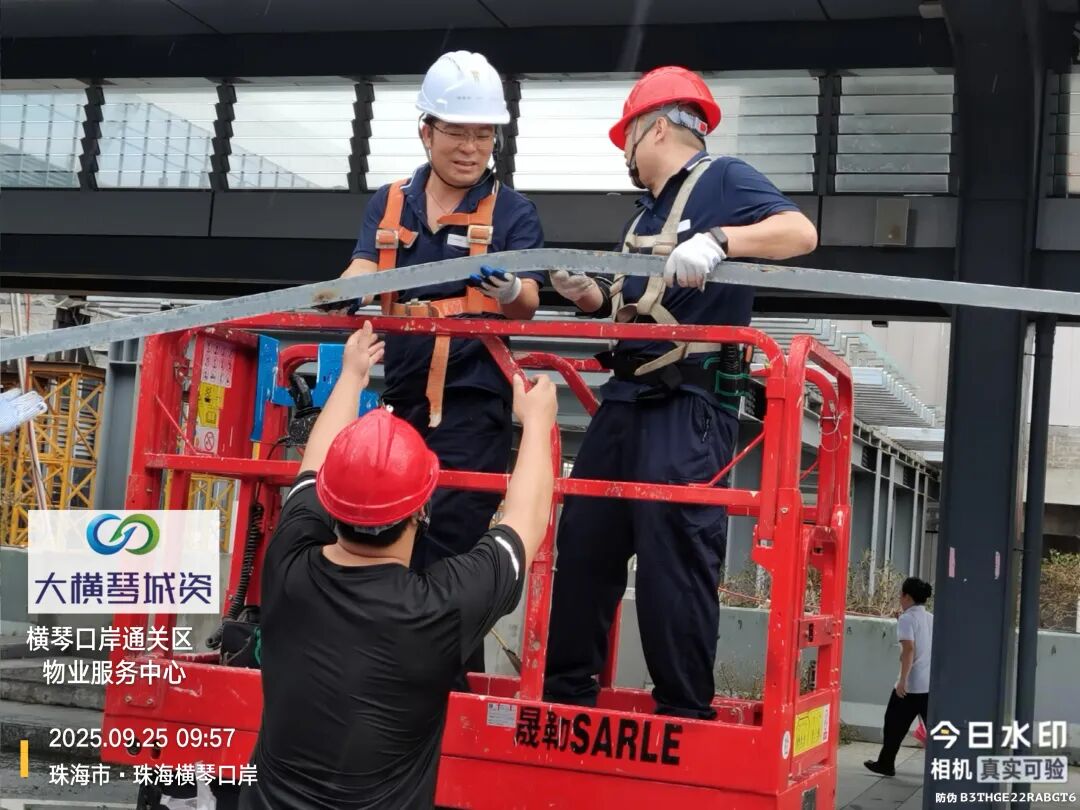 9月24日,根據上級有關部門的通知,17:30起,橫琴口岸客車通道及隨車人員驗放廳恢復通關服務;23時起,橫琴口岸全面恢復通關服務。為盡快恢復生產通關秩序,珠光集團累計出動過千人次,爭分奪秒開展災后清障、秩序維護、環境清潔、設備檢查和搶修等工作,清潔面積近10萬平方米,恢復鐵馬、水馬以及室外垃圾桶等設施1900余個,成功保障口岸通關服務如期恢復。