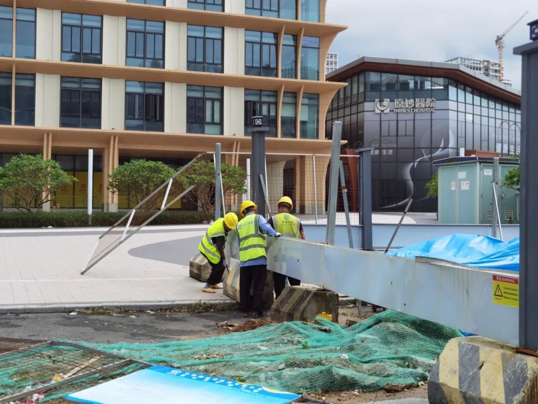 臺風過境后,珠光集團98個在建項目迅速開展復工復產準備工作。各單位有序組織項目一線管理人員和工人進行災后進場前安全教育培訓后返回工地,迅速開展清理雜物、圍擋維修、恢復受損設施等工作,對辦公區和生活區、臨時設施、現場臨水臨電系統等進行全面安全排查,對大型設備、腳手架等進行專項檢查、檢修,統計災后受災情況上報集團。
