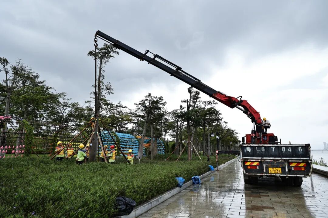 珠光集團組織500多人次投入到橫琴星樂度·露營小鎮、花海長廊、濕地公園、星享·天沐酒店、南油大酒店、人才公寓等旗下文旅項目的復工復產工作,目前已高效完成園區道路清障任務,全面恢復所有電力系統,修繕園區導視牌、(高空)廣告牌,對帳篷頂部損毀區域進行安全圍蔽;基本完成人才公寓受損住戶的室內設施維修工作,有序安置受影響的住戶;加快完成花海長廊3、5號驛站廣場因海水倒灌造成的淤泥與垃圾清運,以及賽艇公園大面積倒伏樹木扶正復原工作。