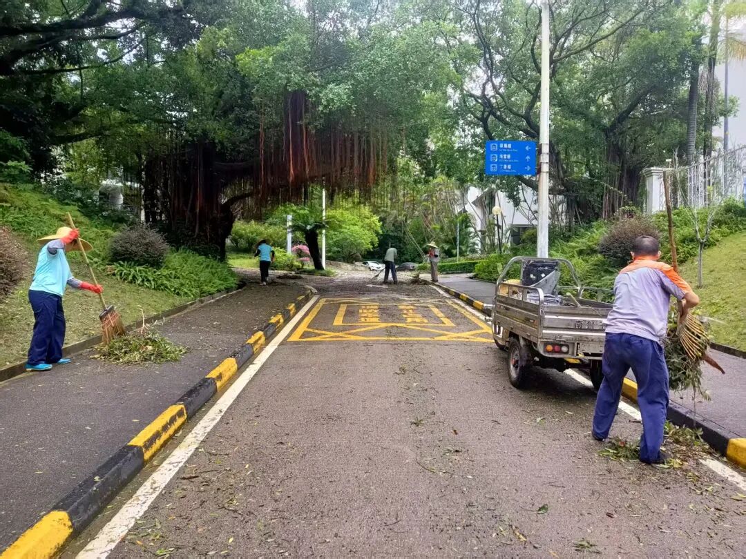 9月25日,珠光集團黨委嚴格落實“雙報到”機制,主動對接社區需求,迅速啟動集團黨員先鋒突擊隊中的13支小分隊前往拱北街道華僑社區及灣仔街道作物社區、富興社區、桂圓社區、灣仔社區等社區開展清理倒伏樹木的殘枝落葉、排查安全隱患等工作,保障車輛與行人安全通行。