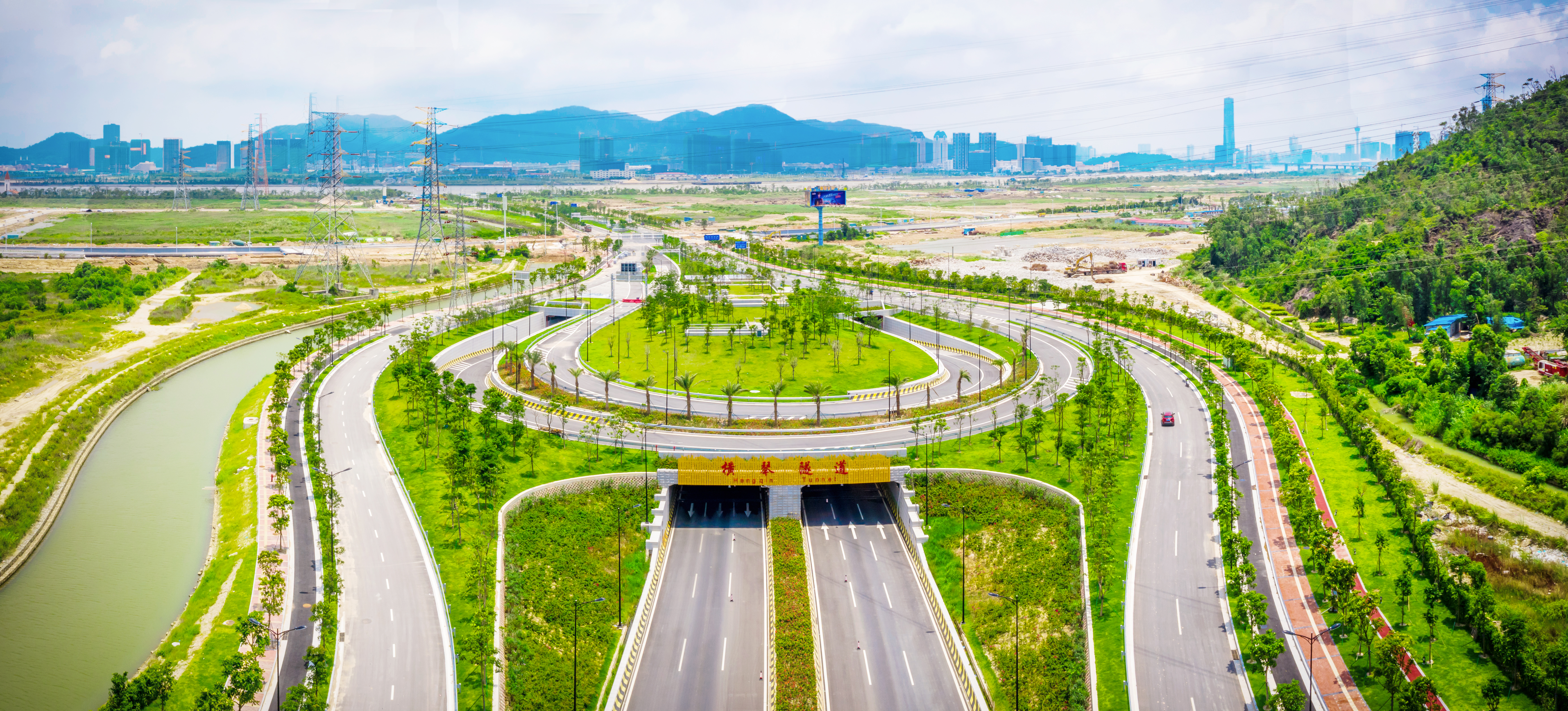 橫琴隧道連接保稅區和橫琴,工程范圍南起橫琴中路,下穿環島北路,過馬騮洲水道后,向北至南灣大道;路線全長約2834.6m,其中過馬騮州水道段為圓隧道段,單管設置單向3車道,兩管組合形成雙向六車道,隧道外徑14.5m,長約1081.6m。采用盾構法施工,該隧道為華南地區首條海域超大直徑盾構隧道。