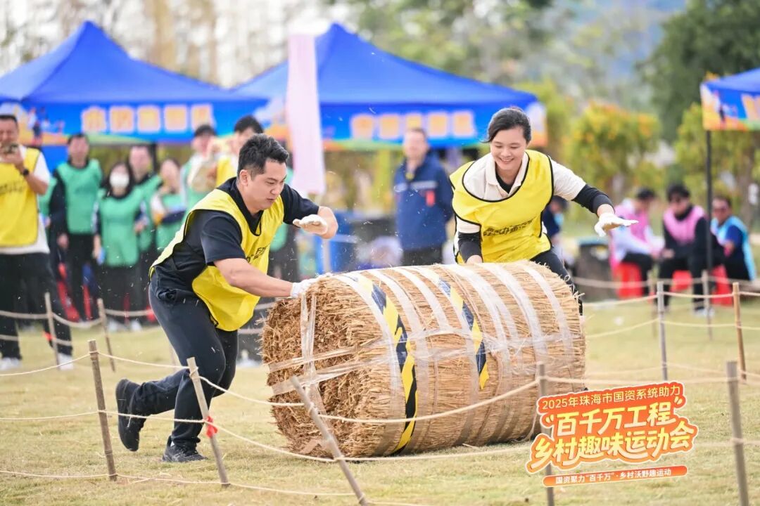 11月21日,由珠海市總工會與珠海市國資委聯合主辦、珠海市珠光集團控股有限公司承辦的珠海市國資系統鄉村趣味運動會在珠光集團斗門世榮草朗生態園火熱上演。來自珠海市總工會及國資系統的10支代表隊,約300名干部職工齊聚田間地頭,以運動為媒,以鄉村為舞臺,展開了一場別開生面、趣味盎然的競技交流,在田園鄉野間完成了一場體力、協作與趣味的綜合較量。